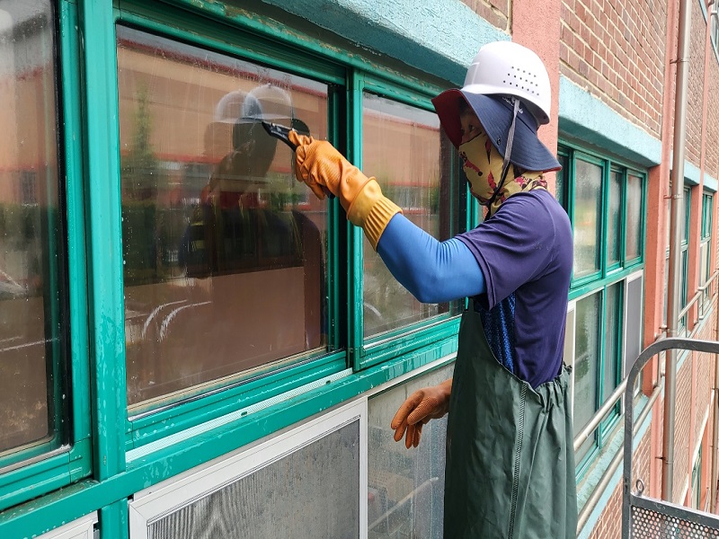 김포 유현초교 외부유리 청소 사진