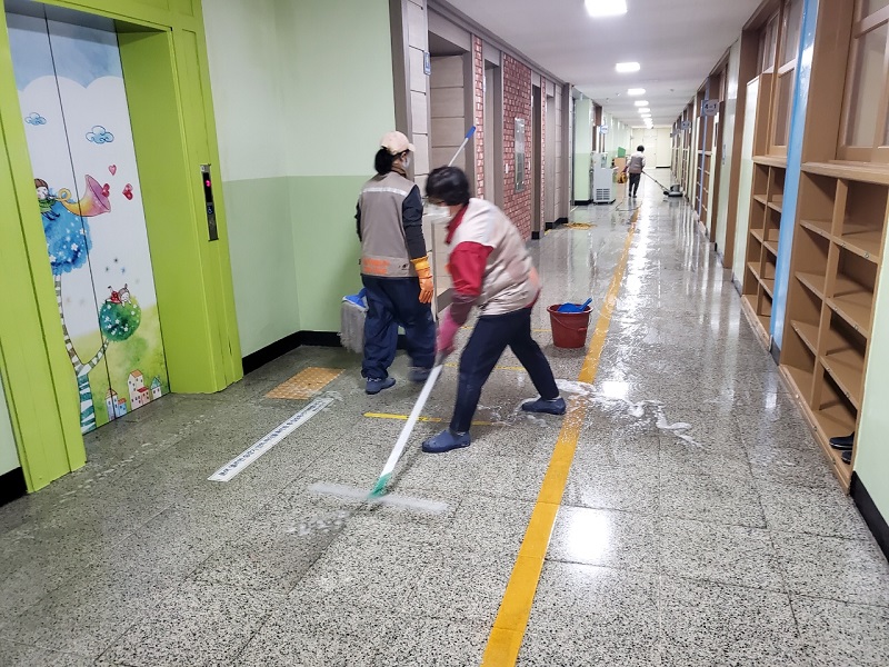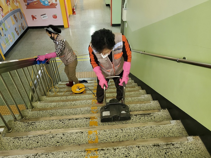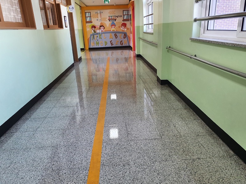 시흥 옥터초교 계단 및 복도 왁스 청소 사진