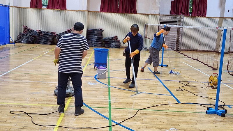 체육관 왁스 청소 사진