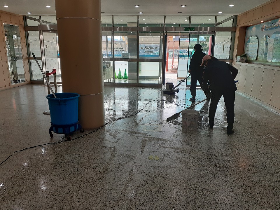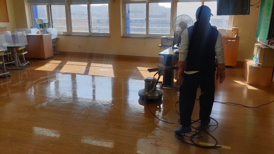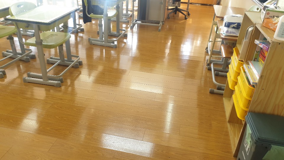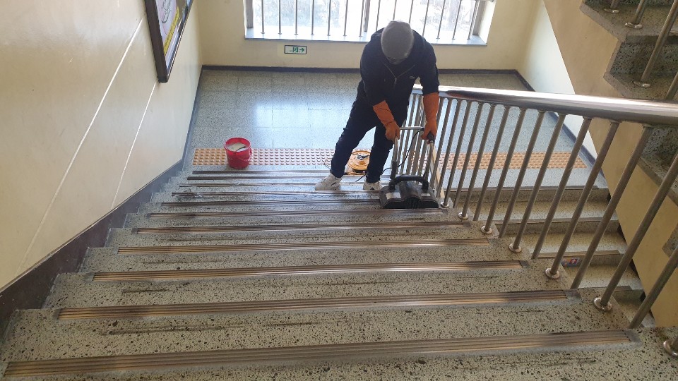 부천수주초교 교실, 복도 및 계단 왁스 청소 사진