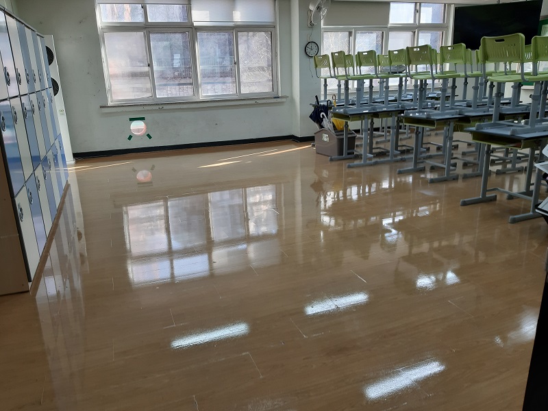 교실, 특별실, 관리실, 복도 및 계단 왁스 청소